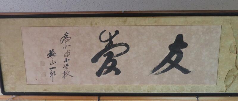 「その額は内閣総理大臣だった鳩山一郎さんが、北浦小・北浦中・宮野浦分校・直海分校の4校に書いて送ってくださった物です。僕が子どもの時から学校にありましたよ。」