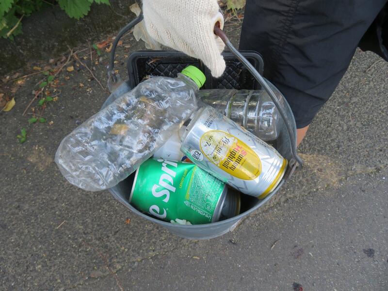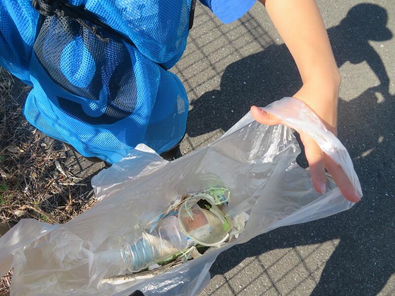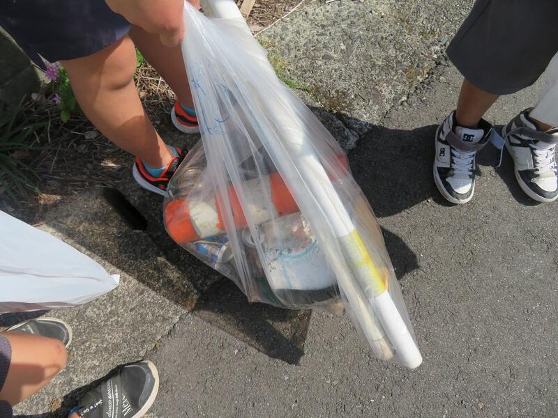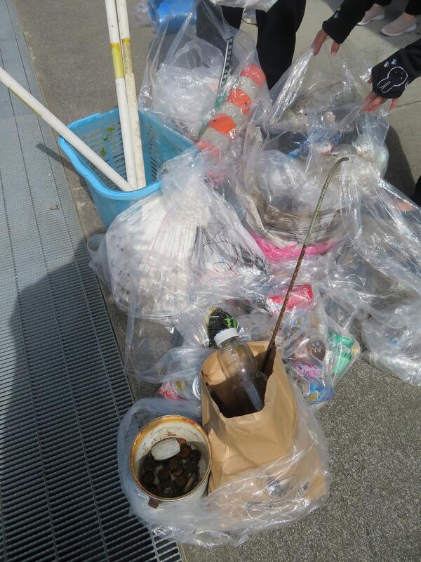 ↑どの班も汗だくになりながら、袋いっぱいのゴミを拾いました。たばこの吸い殻や空き缶が特に多いようでした。