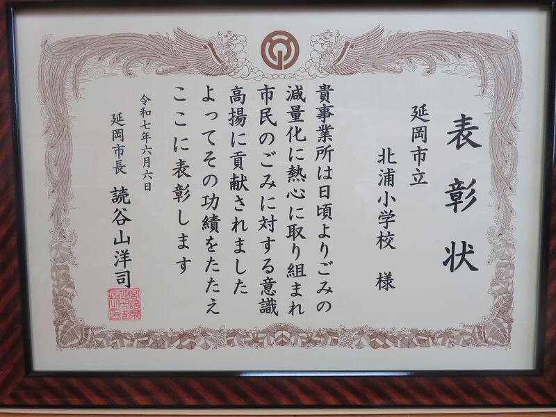 これは児童の日頃からの取組や意識の高さが表彰されたもので、保護者の皆様のご支援とご協力、そして今まで勤務された先生方の努力の賜物かと思います。これからも北浦のきれいな海や自然を守るために、ごみ減量に取り組んでいきましょう。