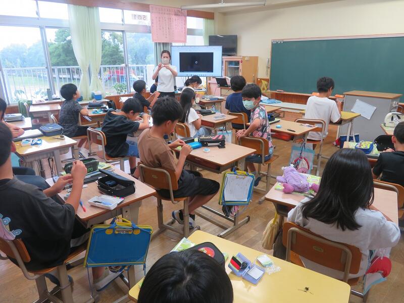 ↑ 4年生はアルファベットの歌を歌ったり、天気の言い方を言ったりと、発音にも気をつけながら楽しく学習していました。