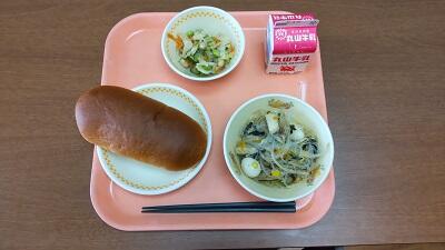 今日の献立は、減量コッペパン、牛乳、太平燕、納豆サラダです。