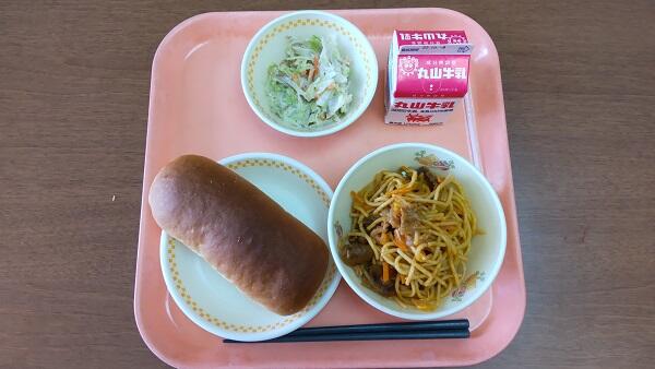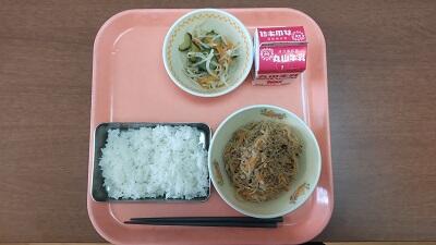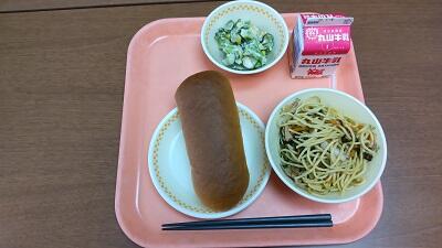 今日の献立は、減量コッペパン、牛乳、和風スパゲッティ、ひじきサラダです。
