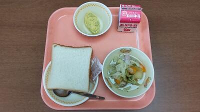 今日の献立は、食パン、牛乳、ほうれん草のオムレツ、ポトフ、リンゴジャムです。久しぶりにリンゴジャムを食べました。私が小学生の時はパンが多くジャムはよく出ていた記憶があります。ジャムは一万年から一万五千年前にスペインで食べられていたそうです。日本では明治時代になってからだそうです。果物とかがたくさん採れるヨーロッパとの違いなんでしょうね。
