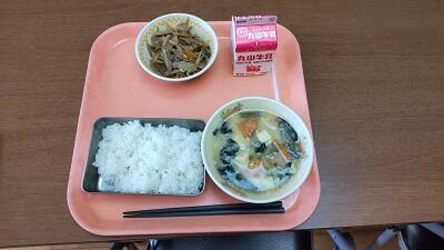 雑煮は、小さいお団子状のお餅でしたので、のどにつかえることもなく、食べやすかったです。いわしの生姜煮も、やわらかくおいしかったです。紅白なますや、お雑煮のお餅などが紅白になっていて、お正月バージョンの給食でした。今日もごちそうさまでした。