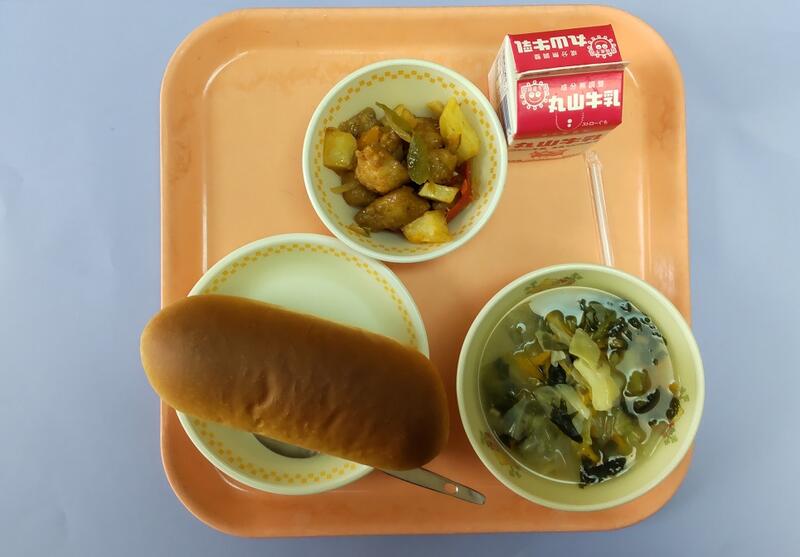 中国発祥のジャージャー麺は、ピリ辛のイメージでしたが、給食のジャージャー麺は低学年にも食べやすい味付けでした。