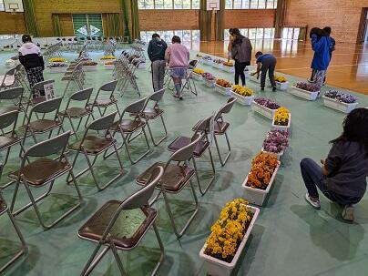 明日は令和4年度北浦小学校の卒業証書授与式です。今日は6年生の卒業を祝うために4年・5年生が前日準備を行いました。会場には美しい花々が飾られ、みんなできれいにして会場設営を行い、明日の卒業式を迎えるばかりとなりました。準備OK!