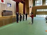 今年は9名の1年生が入学してきました。入場では担任の平出水先生に連れられて一列で歩いて入場する姿がほほえましくもあり、会場は温かい拍手に包まれました。