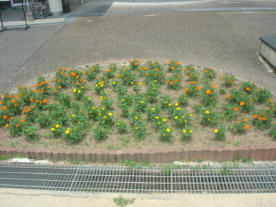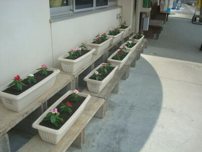 今日1年生は、学級前の花壇に植えたイモを掘りました。