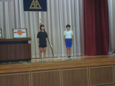 続く校長先生の話の中で、校長先生から子どもたちに「北浦小学校の良いところを教えて下さい。言える人は立って下さい」という問いかけがありました。多くの子どもたちが立ち上がり、「あいさつがよい」「みんな元気がある」「思いやりがある」などの言葉が聞かれました。本校のめざす児童像は「元気いっぱい」「やる気いっぱい」「思いやりいっぱい」です。子どもたちにもこのことがしっかり浸透しているなあと感じたところでした。発表をしようと立ってくれた子どもたちは、全校のみんなの前で緊張しながらも勇気を持って立ってくれた子どもたちです。まず、その気持ちが素晴らしいと思いました。