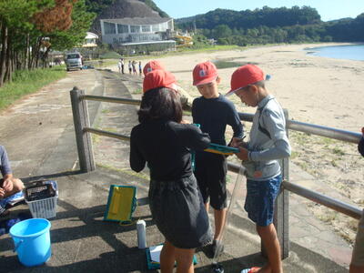 10月27日に秋の遠足を実施しました。1・2年生は下阿蘇ビーチへ、3・4年生は大淀川学習館・動物愛護センター(宮崎市)へ、5・6年生は遠足ではないのですが、須見江のビーチへ地引き網漁へ行きました。