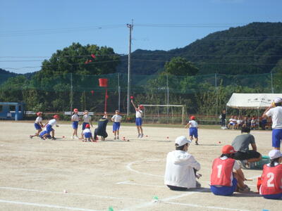先日1年生の体育で私が模範授業を行いました。子どもたちが主体的に取り組み、楽しく運動するためにオリエンテーションの中で準備運動の資料をもとに自分たちで準備運動を考えさせました。そして、ボールあてゲームでは、高い得点をとるためにはどんなことをすればいいのか、みんなで話し合う時間を設定し、作戦を考えさせて、再度ゲームをさせました。得点は前半よりとても多くなり、1年生の子どもたちもそのことに気付いた上に、体育のワークシートには、チームワークが大切なんだということも書かれていました。担任の先生も子どもたちの動きの変化に気付き、今までの授業の改善を図って、今日運動場でボール遊びの授業を行っていました。