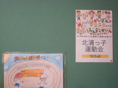 北浦小学校の掲示板は、行事のお知らせを行うものと、子どもたちが主体的に活動した作品等を掲示しております。下の写真は、4月から6月にかけて行う検診関係の案内です。子どもたちが利用する玄関のそばに設置して、子どもたちの意識を高めたり、確認できたりするようにしています。