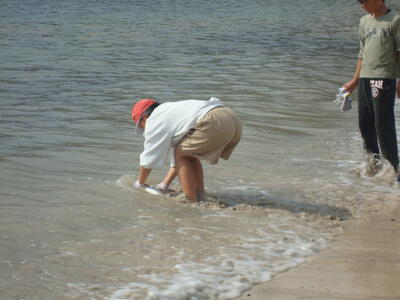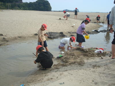 1・2年生は川と砂浜で、ダムを作ったり、池を作ったりと、その場の状況に合わせて楽しんでいました。落とし穴を作っている子もいましたよ。