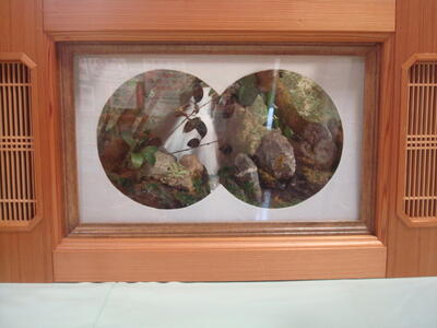 10月1日から11までの間、フォレストフレームという作品を展示します。フレームの中に、自然の物(石・木・こけなど)を使ってアートにしている作品です。