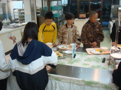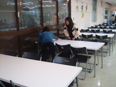 ↑ 食べ終わったら、上の写真のようにきれいに片付け、係の人が片付けしやすいようにしてくれました。これは前日の夕食の時もです。