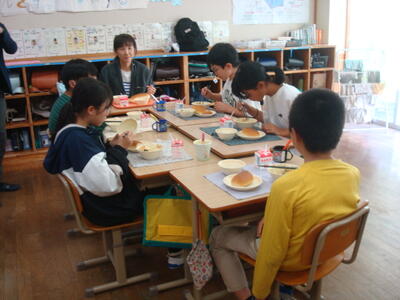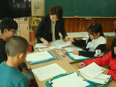 5年生は家庭科でナップサックを作っています。この制作活動において婦人会の方々にご協力いただいているところです。10月2日で3回目でした。ようやく、全員が完成することができました。6時間で完成させることは早いことです。婦人会の方々のご協力により、完成が早まるとともに、地域の方々と交流できたことも大切にしたいことです。