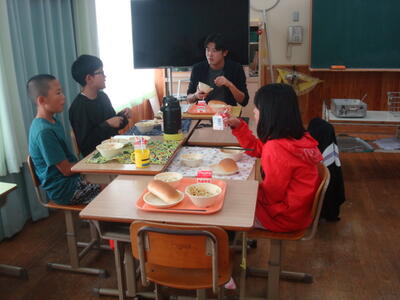 9月26日の給食の時間に、放送委員会が赤団・白団の団長にインタビューを行いました。そのインタビューを生放送で行いました。