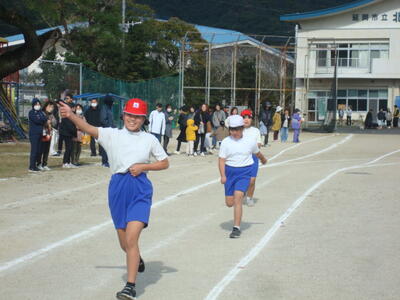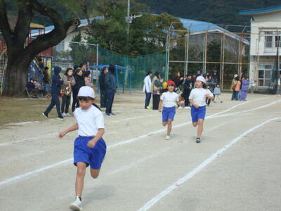 順番は低学年・中学年・高学年の順で競技をしました。順番待ちの子どもたちは大きな声で「がんばれ~」と何度も言いながら、場合によっては走っている子もそばに来て一緒に走ってあげたりと、涙がウルっとしちゃう瞬間もあり、子どもたちの走る頑張りだけでなく、応援の姿にも感動したところでした。