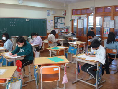 12月3日に、4年生は宮崎県の学力調査、4年生以外は学校内での学力調査を行いました。教科は国語と算数です。今の学年の11月末までの学習内容が問題に出ているものです。