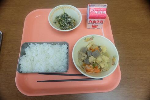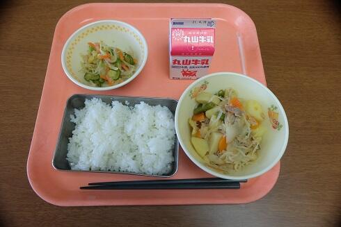 今日の献立は、牛乳、ごはん、大根のうま煮、梅かつお和えです。