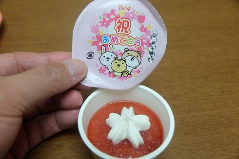 一年生の入学と他の学年の進級をお祝いしてのイチゴゼリーのデザートも付いていました。