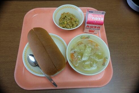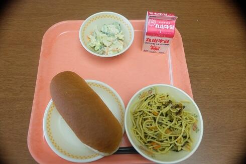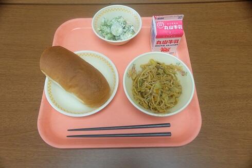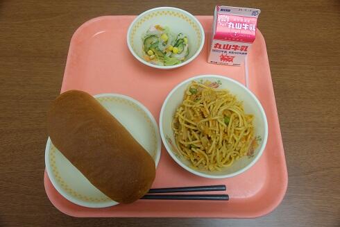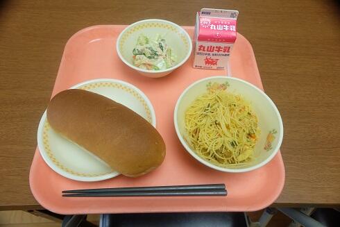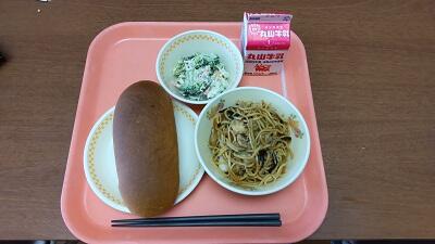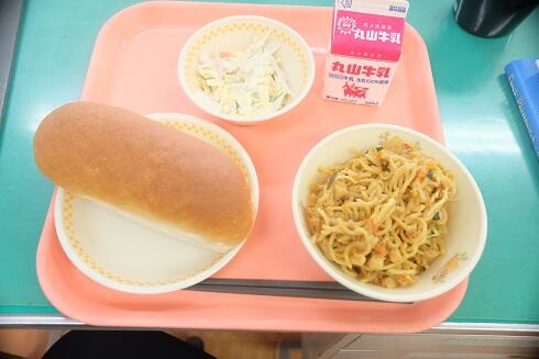 今日の献立は、減量コッペパン、牛乳、焼きそば、