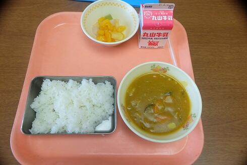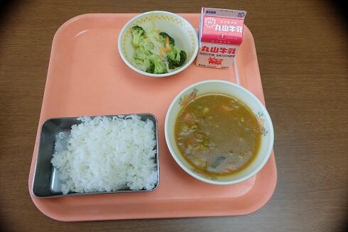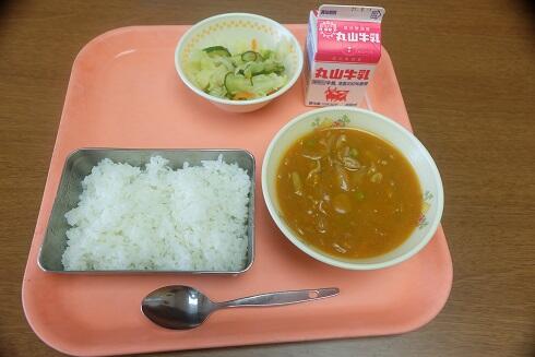 今日の献立は、牛乳、ハヤシライス,キャベツレモン和えです。