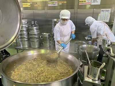 かかります。給食を作ってくださる方々の思いを感じながら残さず