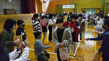 今日は6年生を送る会、お別れ集会がありました。体育館に全校児童が集まり、6年生のために各学年ごとに歌やクイズ、呼びかけなどの出し物を発表しました。