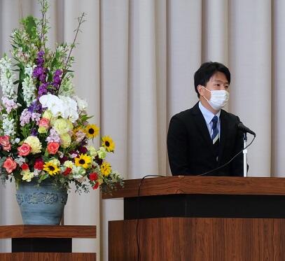 代表して、卒業生の松原さとしさんから、心あたたまる贈る言葉をもらいました。