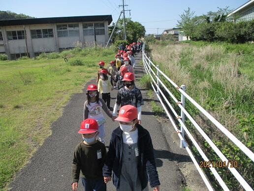 お別れ集会が終わったあとは、遠足です。北浦海浜公園に向けて、全校で大移動です。約20分程度歩いて目的地へ到着しました。