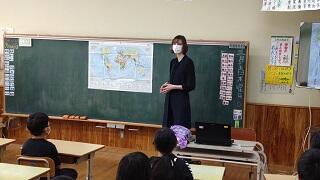 今日の北浦小は、「ミャンマーデー」です。JICA九州宮崎県地域国際協力アドバイザーの富山隆志先生に来校いただきました。延岡市の澤野教育長、保健体育課の早瀬補佐と、いつもお世話になっている津隈さんも来ていただきました。6年生の教室で「ミャンマー」について、貴重な映像を見せていただいたり、クイズを出していただいたりして教えていただきました。今、クーデターで苦しむ国「ミャンマー」。今、この時に「ミャンマーについて」学ぶ貴重な日となりました。テレビに映る人々の暮らしを見て、富山先生の思いのこもった言葉を通して、ミャンマー風カレーから漂うスパイシーなにおいを通して、子どもたちは精一杯、ミャンマーという国を想像しました。見たこともない国の文化、様子を、何かを手がかりに、ぐっと自分の頭に思い描く貴重な経験です。ドイツのブブリスさんの時と同じです。富山先生、ありがとうございました!
