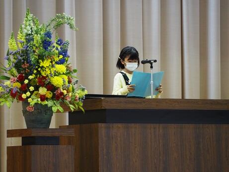 3年生の髙平かほなさんと、5年生の松田ゆうしんさんが、これまでの反省と次への決意を力強く読みました。