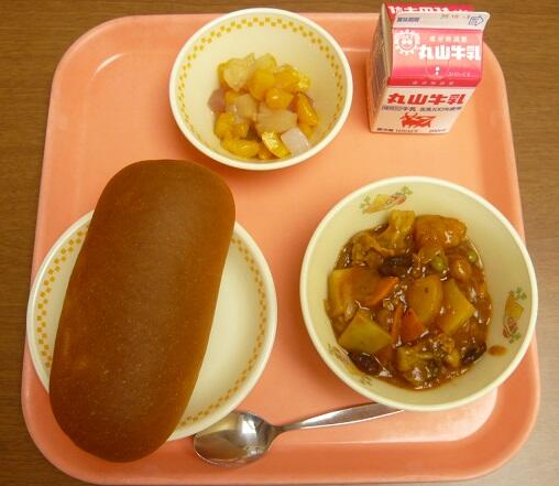 2月19日 リクエスト献立 カレー フルーツナタデココ ご飯 牛乳