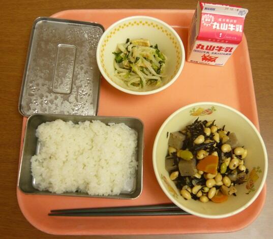 10月2日 大豆の磯煮 小松菜のゴマ和え ご飯 牛乳