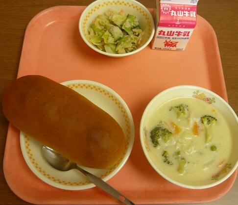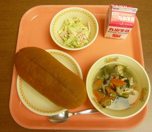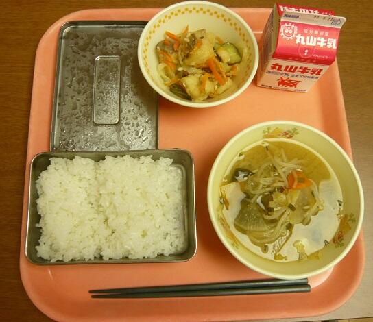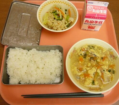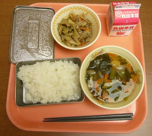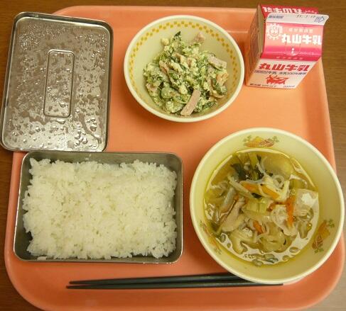 今日は熊野江小学校のリクエスト献立でした。レモン和えは子どもたちに人気です。とてもおいしくいただきました。スープは、タケノコと椎茸の食感がよく、これもおいしくいただきました。
