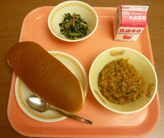 カボチャのミートソース ビタミンAサラダ ミルクパン 牛乳