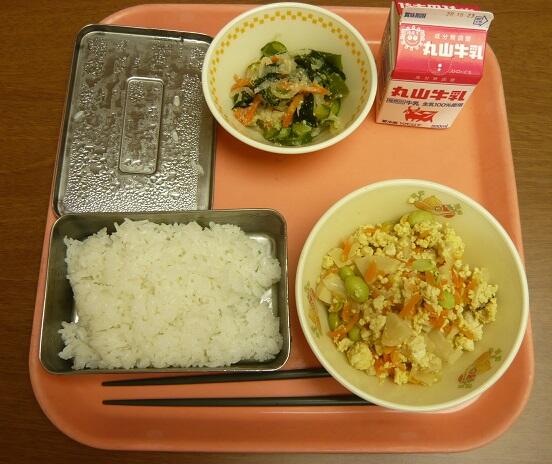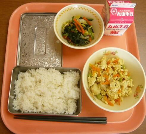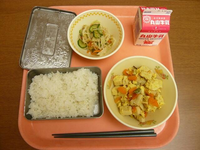 10月16日 炒り豆腐 酢味噌和え ご飯 牛乳