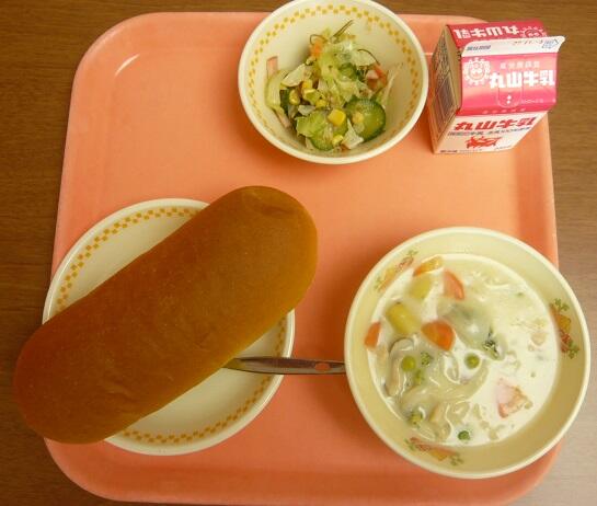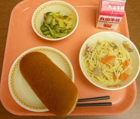 2月18日 クリームスパゲティ フレンチサラダ コッペパン 牛乳