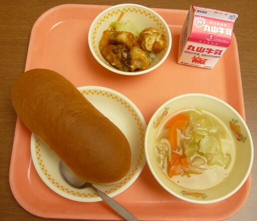 唐揚げがさくっと揚がり、食べ応えのある鶏肉、ご飯とキャベツとよく合いました。すまし汁でバランスもバッチリ!リクエスト献立、子どもたちが喜びます!ありがとうございます!