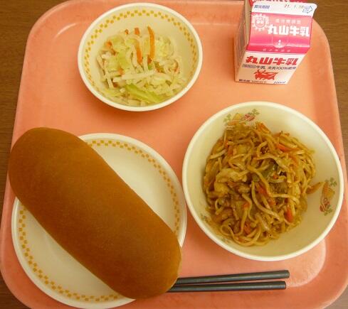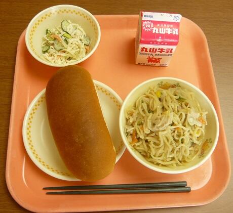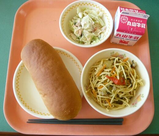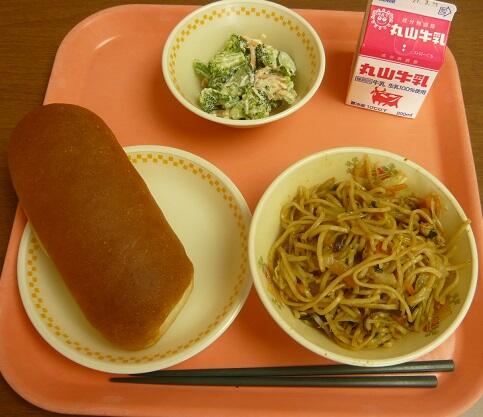 3月18日 やきそば ブロッコリーのマヨ和え コッペパン 牛乳