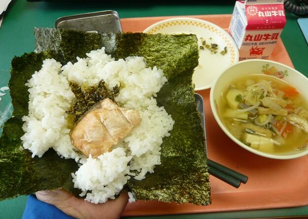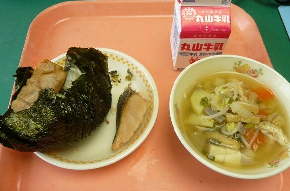 1月26日 おにぎり(海苔・漬け物)鮭の塩焼き みそ汁 牛乳