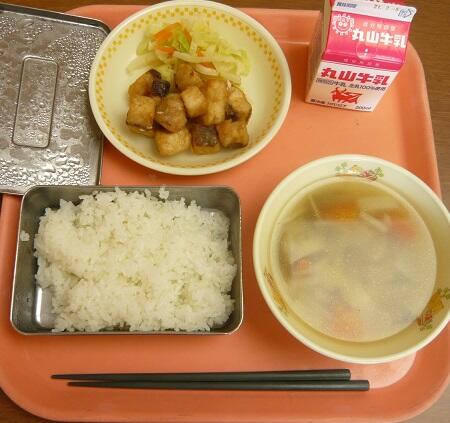 魚にご飯にみそ汁、とても落ち着きます。おなかにぐっと力が入ります。さくさくの揚げ魚は、とてもぷりぷりでいい脂がのっていることがよく分かります。「あじ」ですね。おいしい給食ありがとうございます。本年度の給食も残りわずかです。よろしくお願いします。