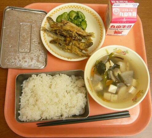 3月10日 めひかりの唐揚げ キュウリのコロコロ漬け つぼん汁 ご飯 牛乳