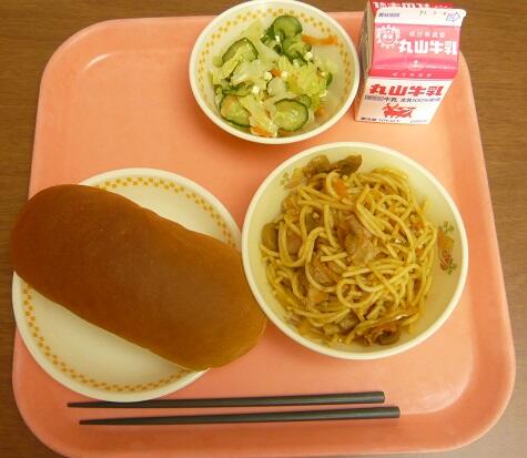 9月24日 カレービーフン 野菜のマヨネーズ和え コッペパン 牛乳