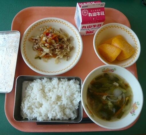 チンジャオロースの味付けで、ご飯パクパクです。五目スープの具材が小さく切ってあり、低学年の子どもたちも食べやすいと思いました。みやざきマンゴーは、シャーベット状のものが次第にとけはじめ、あま~くあま~くそのうまみが入ってきました。連日の豪華な食材に、感謝です。