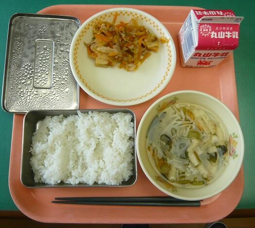 つぼん汁に、しいたけやゴボウ、にんじん、豆腐、鶏肉、だいこんなど、たくさんの食材が入っています。それぞれの食感や味を楽しめます。和食の金曜日でした!