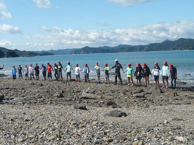 今日は秋の遠足の日でした。5年生と6年生は、宮野浦公園と大間海岸に行きました。
