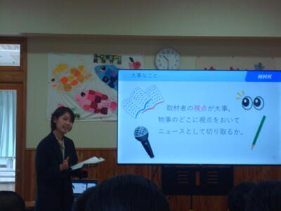 11月14日に、3~5時間目を利用して、ニュース作りに関係する学習を行いました。記者の方、カメラマンの方、編集の方の仕事内容や仕事の流れ、大切にしていることを話していただきました。