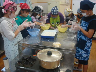 交流会に向け、1・2時間目に「白玉だんご作り」をし、元気塾の方々へのプレゼントとして準備をしました。子どもたちは楽しく、意欲的に作っておりました。白玉だんごができあがると、宮野浦の「めだかの学校」に向かって出発し、そこでは、「魚釣りゲーム」「なんでもバスケット」「歌のプレゼント」等を行い、元気塾の方々にたくさん褒めてもらえたようでした。
